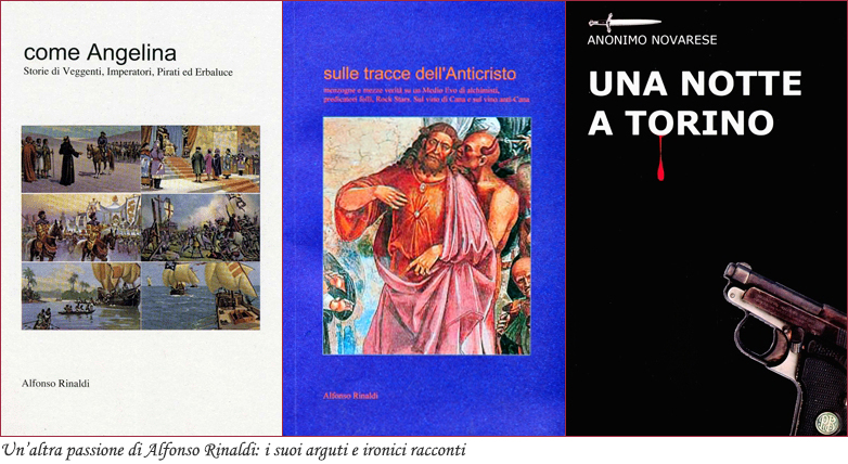 Alfonso Rinaldi è sicuramente fra questi, credo sia una delle persone più autentiche che abbia mai conosciuto. Le passioni rappresentano la sua vera essenza: il rock, quello storico dei Led Zeppelin e dei Rolling Stones, lo scopri subito andandolo a trovare nella sua cascina di Suno, nel novarese, te ne parla a 75 anni con l’entusiasmo di un ragazzo, ti mostra con orgoglio i suoi LP ormai introvabili. Tutto intorno ci sono libri, altra passione di Alfonso, che non si limita a leggere ma scrive racconti di proprio pugno, tre dei quali ho avuto la fortuna di leggere: “Come Angelina”, di cui →qui riporto la recensione, “Sulle tracce dell’Anticristo” e il recentissimo “Una notte a Torino”, firmato con la sua solita ironia “Anonimo Novarese”.