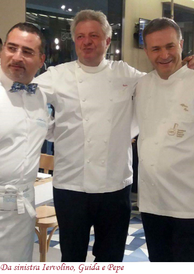 “Riteniamo doveroso – ha affermato Gianfranco Iervolino – che l’alta cucina vada in soccorso delle produzioni autoctone del territorio. Del resto, aggiunge, l’abbinamento ideale per piatti a base di mozzarella, che è uno dei prodotti più tipici di queste zone, è proprio l’Asprinio di Aversa che in molti realizzano nella versioni spumante”. Perfetto si è infatti rivelato l’abbinamento con le creazioni esclusive dei tre maestri del gusto per la serata da Morsi & Rimorsi e, in particolare, con la frittatina di Peppe Guida realizzato con bucatini del pastificio Dei Campi, friarielli, salsiccia e nduja e con la pizza “Nonna Rosa” che il padrone di casa, Gianfranco Iervolino ha voluto dedicare proprio allo chef stellato riportando sul top della pizza gli ingredienti di un celebre piatto di Guida: crema di patate, baccalà, scarola riccia, zeste di limone, polvere di camomilla e peperone crusco.