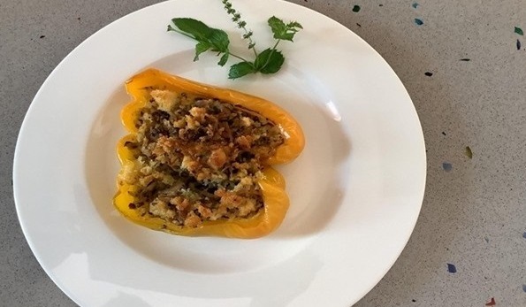 Peperoni ripieni di tonno e mollica con Ischia Biancolella