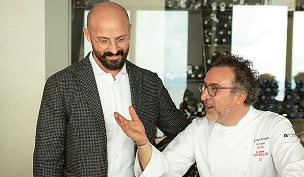 C’è anche una sezione dedicata ai vitigni meno conosciuti del territorio come la Recantina, la Rabbiosa, la Pataresca, la Cavarara nonché ad autentiche nicchie come il Savagnin o il Trousseau della zona di Arbois e Chateau-Chalon, nel Jura francese o il Fer-servadoux di una piccolissima zona del Sud Ovest della Francia, solo per citarne alcuni. Entrare in questo santuario enologico è un’autentica emozione e non puoi fare a meno di rizzare le orecchie per sentire il polline di suono, come direbbe il poeta Clemente Rebora, scendere dagli scaffali e avvolgerti come una sinfonia enoica che solo pochi eletti hanno la fortuna di udire. Mentre il mio pensiero va ad Angelo per ringraziarlo di avermi fatto partecipe della ristretta cerchia degli illuminati che possono accedere al tempio, ci raggiunge Osorio, fratello di Ferdinando e genuino, schietto, spontaneo artigiano dei fornelli, per avvisarci che il pranzo è servito.