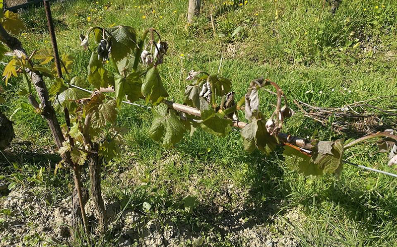 La maggior parte dei vigneti, essendo terrazzati e ben esposti quasi tutti oltre i 300 metri, hanno avuto solo un rallentamento nella crescita per colpa delle temperature scese repentinamente la scorsa settimana. La piccola parte delle vigne colpite infatti, sono quelle situate a fondo valle e con esposizioni più ridotte. Purtroppo il caso più eclatante è proprio su una vigna giovane, non ancora in produzione, coltivata a Pinot Nero e Riesling Renano.
