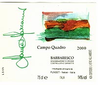 Siamo ormai abituati ad apprezzare i vini di Marina Marcarino, ogni anno più buoni e interessanti, ottenuti rigorosamente da uve biologiche aziendali. Per questo motivo non ci stupisce il Barbaresco Campo Quadro ’00, che mostra di avere stoffa ed eleganza, forse anche superiore al ’98, un colore rubino-granato di bella profondità e concentrazione, unghia giustamente appena più scarica di colore. La consistenza appare ottima, c’è un perfetto susseguirsi di archetti fitti e lacrime rotonde e lente. Ha naso fine, bouquet che tende al complesso (il vino è ancora giovanissimo), con note floreali di violetta che si fondono a sensazioni balsamiche, tostato e vaniglia, succeduti da frutti rossi di bosco (amarena, susina rossa) e speziatura in formazione (fra cui tabacco). Al gusto mette in risalto una bella struttura e un tannino giusto, fine; il legno è appena evidente e gli infonde una piacevole dolcezza, ritorna il frutto, qui meglio espresso a renderlo equilibrato e di grande piacevolezza. Il finale è di buona lunghezza e perfetta pulizia. Un Barbaresco signorile, elegante, piacevole già ora ma con notevoli possibilità evolutive. Servitelo a 18° in bei calici ampi, vanno benissimo quelli da Barolo, con i classici taglierini al tartufo, maccheroncini al sugo di arrosto, roston al tartufo, fonduta (in questo caso servitelo attorno ai 16° per esaltarne la forza tannica e garantire maggior freschezza al palato).