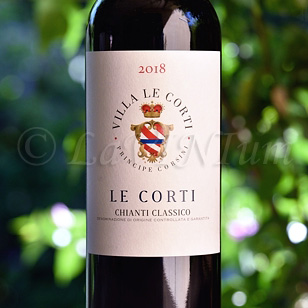 Il Chianti Classico Le Corti 2018 è ottenuto da sangiovese con una piccola quota di colorino, la fermentazione si svolge con lieviti indigeni selezionati in loco negli anni ’90 e riprodotti ogni anno, in vasche di acciaio troncoconiche aperte, con follatore automatico, a una temperatura controllata di 26 °C per circa 15 giorni. Segue un anno di maturazione in vasche di cemento. Il vino è stato imbottigliato con tappo Diam.