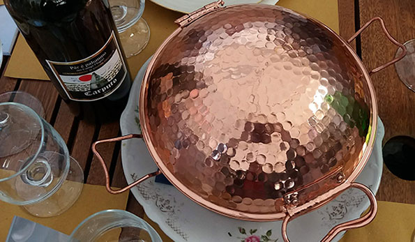 Apprezzato da chi ama un aperitivo fuori dal comune, in grandi calici, credo che possa ottenere un successo maggiore della Ribolla Gialla con i piatti della cucina asburgica, con i quali mi sembra perfetto. Questo rosato, secondo me, più che da pizza (buon suggerimento, Antonella, ma limitativo) è ideale con le pietanze delicate della cucina della Carinzia, della Venezia Giulia, di Vienna. Ma non solo. Ottimo da servire con piatti freddi come prosciutto crudo, tartine ai gamberetti, carpacci di pesce di lago marinati e profumati agli agrumi, tortelli ai porcini, pasta corta con i finferli, focacce, carni bianche, salumi delicati (è stato sopraffino con il prosciutto cotto servito a buffet durante la serata), formaggi dolci e teneri oppure mediamente stagionati ma spalmati con le confetture dei frutti rossi. È un gran bel vino della gioia, della spigliatezza, della convivialità, da servire tra i 12 e i 14 °C d’inverno e tra gli 8 e i 10 °C d’estate, mantenendolo sempre a temperatura controllata nella glacette con acqua e ghiaccio. Non lasciatelo riscaldare in ambiente libero. Tenore alcolico del 12% con 5,3 g/l di acidità, caratteristiche ideali per favorire le chiacchierate con un calice di vino in mano e non soltanto d’estate, poiché sa regalare anche d’inverno un tocco estivo al buon umore con la sua gradazione equilibrata, una bella acidità e… la tipica pericolosità dei tajùt friulani, visto che più se ne beve e meno ci si accorge di averlo bevuto.