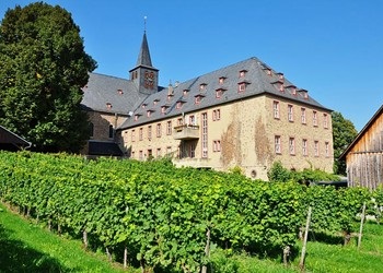 È soprattutto nel Rheingau che gli ordini cattolici benedettini e cistercensi hanno contributo in un modo straordinario alla vitivinicoltura. L’anno esatto dell’inizio della loro attività a Rüdesheim si perde sfortunatamente prima del Mille, ma se ne può trovare una prima menzione del XII secolo nell’ex-voto del nobile Engelhard Brömser che, tornando da lunghi anni di prigionia presso i Saraceni dopo la terza crociata, aveva ampliato il già esistente vigneto parrocchiale. L’arcivescovo Siegfried von Mainz aveva consegnato questa zona nel 1074 a Rüdesheimer in cambio di una piccola tassa annuale in natura ed è perciò che in suo onore questo colle si è chiamato “Bischofsberg”. Qui è sorto un complesso edilizio molto importante della storia della Chiesa, un antico monastero agostiniano semidiroccato che è stato rilevato e ricostruito nel 1165 per ospitare per ospitare le Benedettine di Santa Ildegarda di Bingen con la loro abbazia madre.