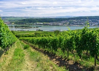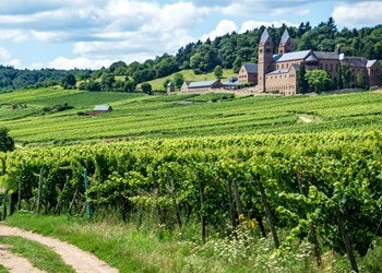 Bischöfliches Weingut Rüdesheim è sicuramente una delle più antiche tenute vitivinicole del Rheingau, un circondario dello stato dell’Assia nella Germania federale. Ha una superficie vitata di oltre 3.000 ettari dalla confluenza del Meno con il Reno, a est di Wiesbaden, che si estendono per altri 50 chilometri lungo la riva destra del Reno fino a Lorch, a nord di Rüdesheim. L’acqua di questo fiume fa da volano termico per moderare gli eccessi di temperatura sia verso il gelo sia verso la canicola e fa da specchio alla luce solare, amplificandola. Un luogo ideale per la vite, tanto che già l’imperatore Carlo Magno (742-814) fece piantare il vigneto intorno al castello di Johannisberg presso Rüdesheim, perché amava i bianchi ed era rimasto colpito dal fatto che la neve qui si ritirava in anticipo rispetto alle altre zone del Paese, concedendo ai viticoltori di poter vendere il vino al dettaglio, ma imponendo il divieto di pigiatura coi piedi e di stoccaggio del vino in otri di pelle.