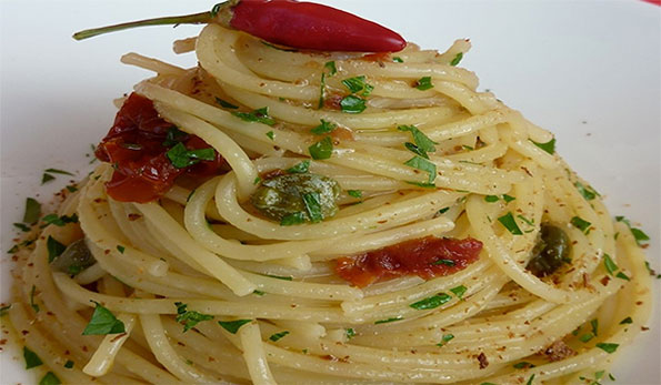 Spaghetti con la colatura di alici di Cetara e Friulano del Collio