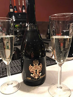da uve pignoletto, sottozona Colli d’Imola DOP, dal perlage fine e brillante, gusto morbido, fruttato, fresco, con un’ottima armonia tra residuo zuccherino e acidità, che equilibra perfettamente il gusto amarognolo tipico del pignoletto.