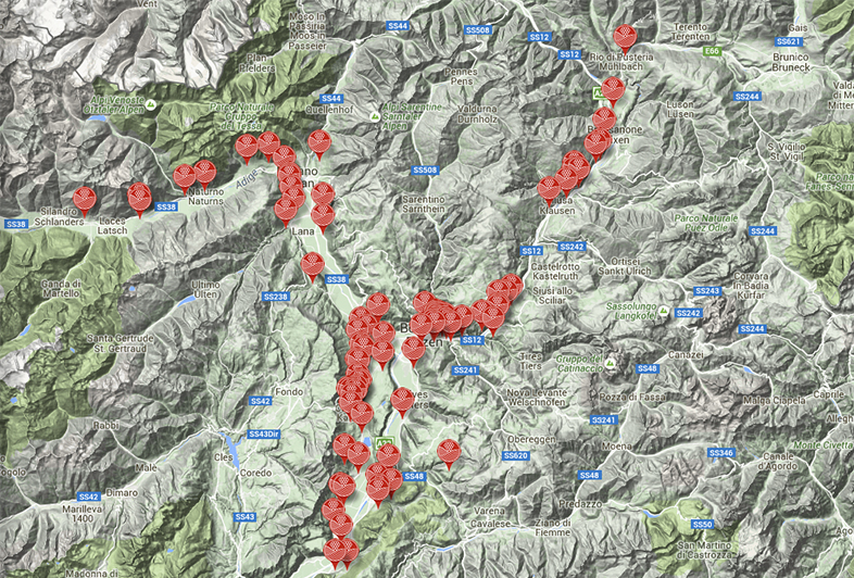 Quest’anno invece abbiamo deciso di cambiare registro, e anziché soffermarci su una specifica zona, abbiamo pensato di dedicarci ad un unico vitigno. Un vitigno, la Schiava, che è sempre stato uno dei più importanti dell’Alto Adige, ma che negli ultimi anni aveva perso sia in importanza come in ettari vitati (ancora nel 2000 se ne contavano quasi duemila ettari), ma che rimane comunque, con i suoi quasi ottocentocinquanta ettari, il più coltivato (18% della superficie vitata regionale).